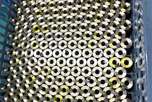 環境に配慮した洗浄システム 当社の洗浄システムは、羽根の振動によって洗浄液を撹拌・流動させる独自の「超振動式洗浄システム」を採用し、複雑な形状や微細な箇所に付着した汚れも効果的に除去します。使用するのは、環境負荷の少ない水系洗浄剤。従来の溶剤系洗浄に代わる、環境対応型の技術として高く評価されています。